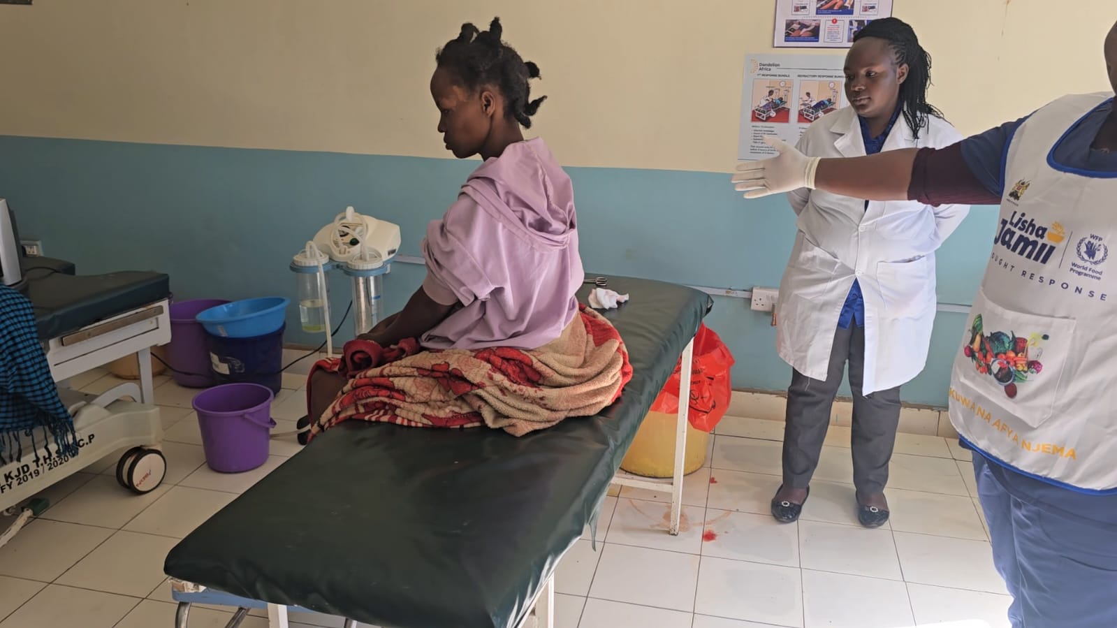 A woman shortly after giving birth at Imurtot. The Health Center doesn't have pipelines to bring clean water from the borehole to the hospital buildings, making sanitation during childbirth incredibly difficult.